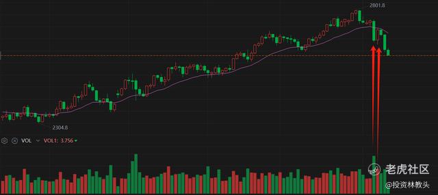 为什么会这样呢?是因为国际资本彻底转向,押注特朗普交易了。强势美元回归了,对手盘黄金,跌得不要太惨。跌破趋势的这根阴线是巨量的,资金在这里高位抛售,第二天有一波反弹,可惜正好顶在压力位上,无力回天,市场随机倾泻而下。