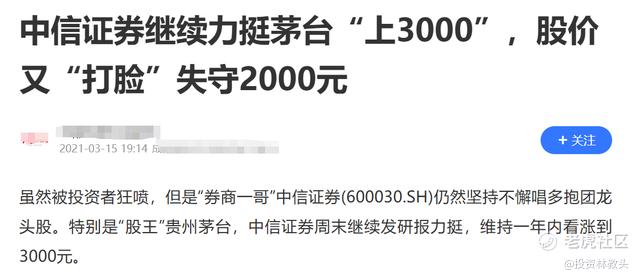 中信因为曾经预测茅台股价站上3000元而成为业内的校花,也有了“中信反买,别墅靠海”的名声。校花在喊看涨了,接下来市场会怎么走,大家拭目以待吧。