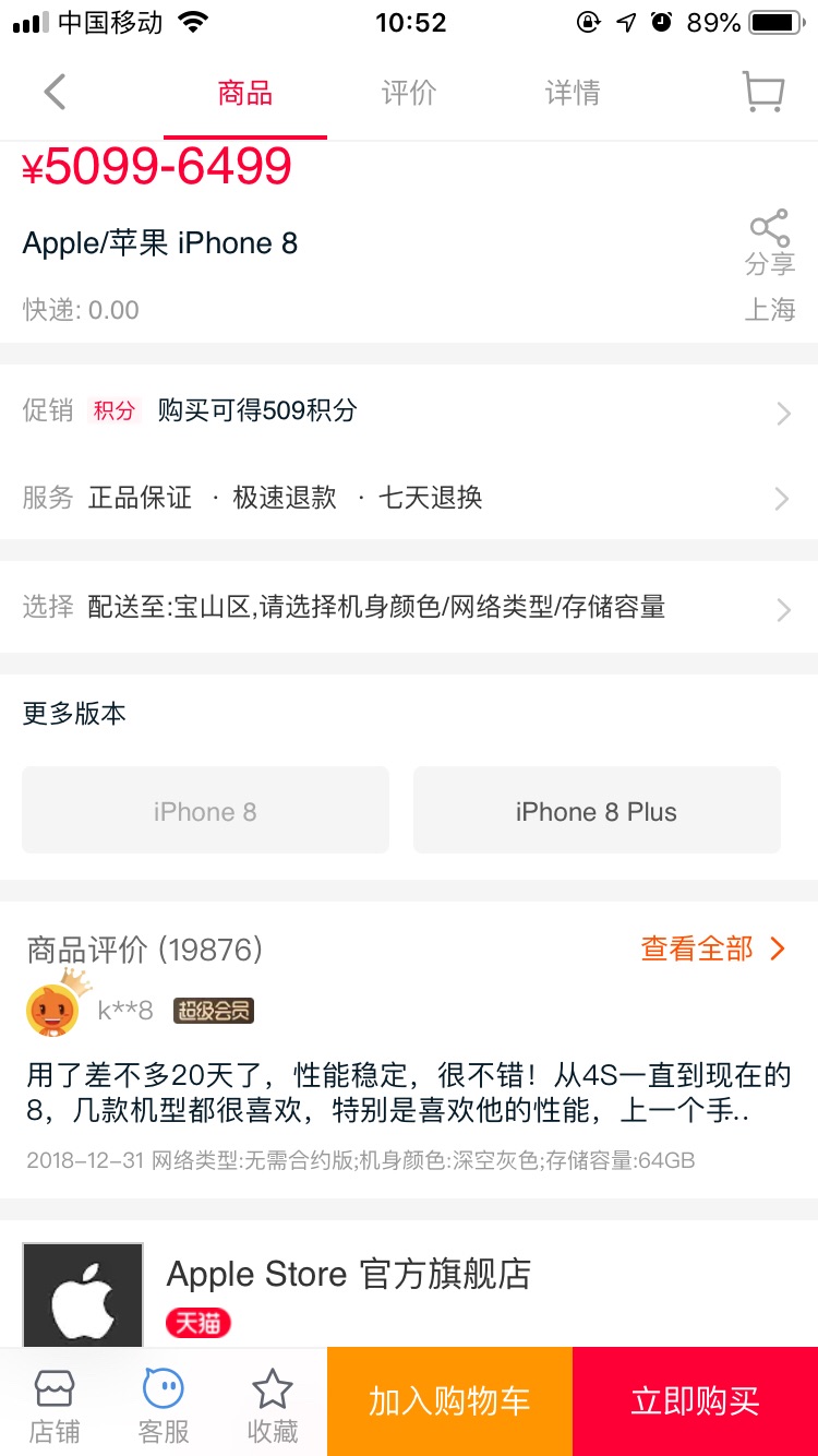 iPhone 8的评论数量(X已经下架)