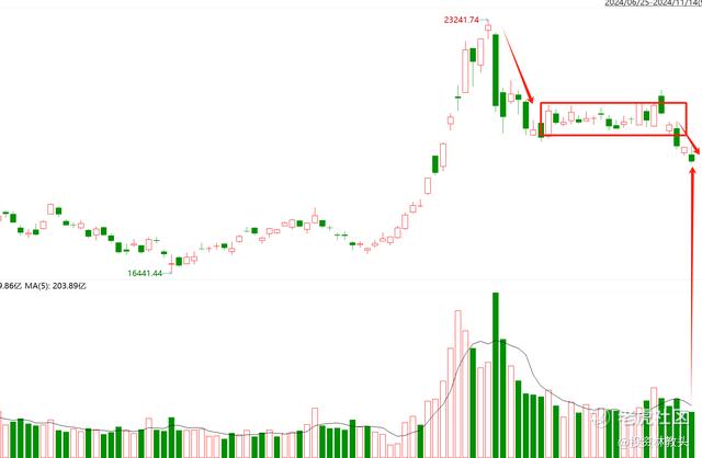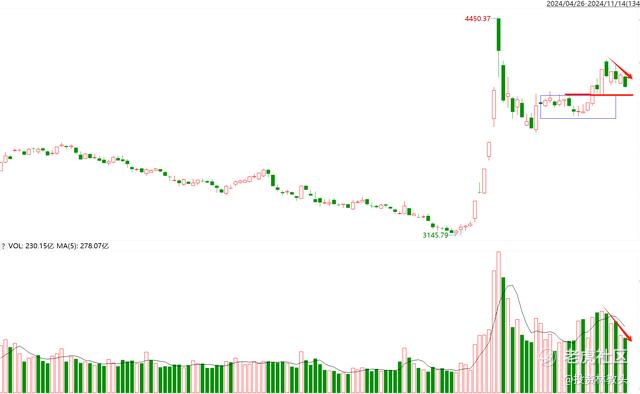 相比之下,沪深300也呈现弱势,但没有那么烂:11月7日强势上涨后,市场开始回调,从量价来看,这似乎真的是一个回调,因为交易量也在持续萎缩,下跌过程中,多空双方博弈也很明显,但空头似乎没有港股那么强。