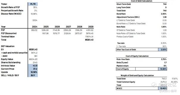 此外,我们预计销售与管理费用每年增长5%,这与公司近年来的策略保持一致。我们还在资本支出上实施了低两位数的增长,预计集团将不得不投入更多以维持创新并支持强劲的增长水平。另一方面,我们预计公司收入成本会逐步调整,使Palantir到2028年实现85%的毛利率。