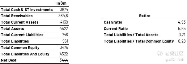公司短期流动性非常稳健,现金头寸几乎是短期债务的5倍。公司还拥有大量资产,流动资产总额是流动负债的5.5倍。