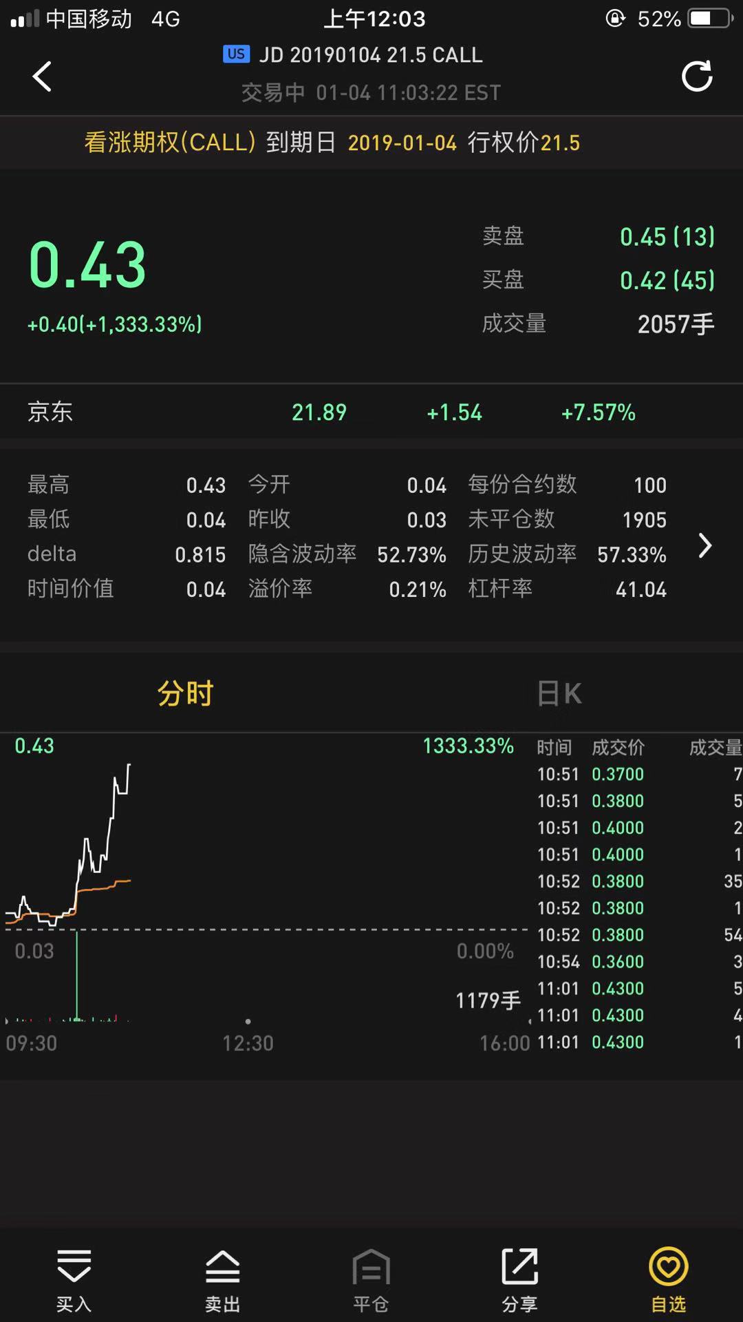 因为昨天京东股票的波动率很大,股价大幅度提高,所以才能促使这张我们俗称的末日期权价格大涨。
