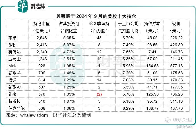 资管巨头 $贝莱德(BLK)$ 发布了2024年9月30日的美股持仓情况。