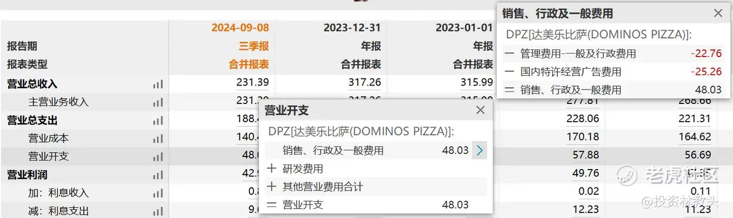 可以看出,达美乐的成本控制确实是非常优秀的,销售+管理费用率只有20%,再细分了看,销售费用率大概10.92%。要知道国内很多消费品公司,如安踏、汤臣倍健等,光是花在砸广告做销售上面的费用,都超过30%。正如前面说的,达美乐已经形成了一张网,这使得它能够把广告费节省下来,不需要砸钱去做曝光。