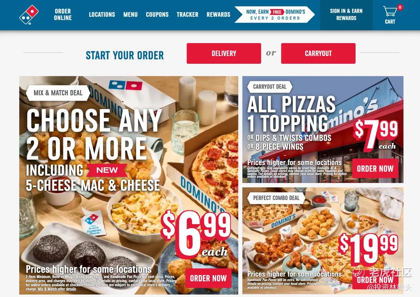 一眼看过去,认知大概就有了:这是一家做披萨和小食的公司,就像必胜客一样,商业模式分为Delivery(送货上门)和Carryout(外带)两种。