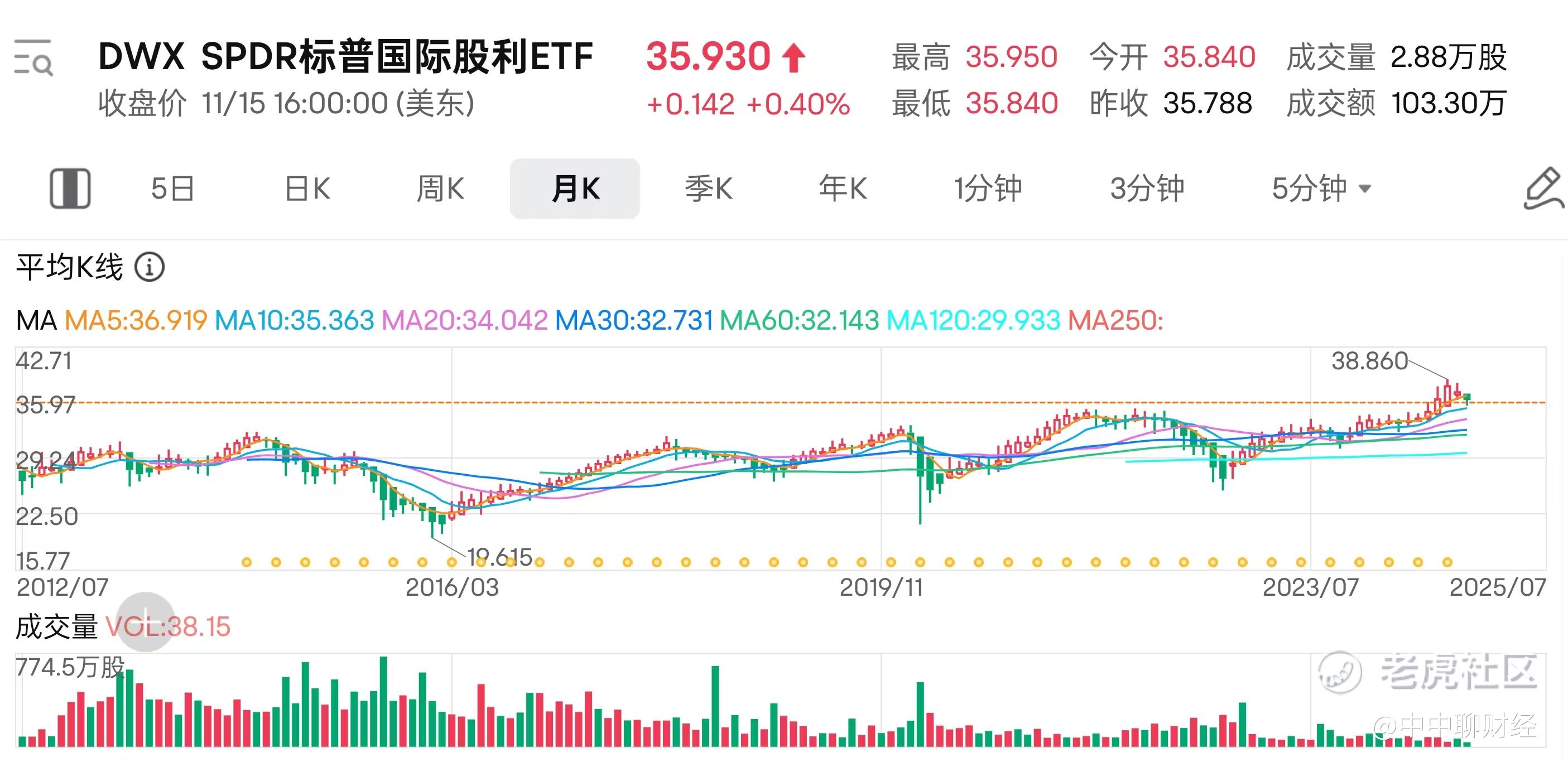 $SPDR S&P International Dividend ETF(DWX)$ SPDR标普国际股利ETF(DWX)主要投资于全球范围内的高股息股票,旨在提供稳定的股息收入和长期资本增值。下面,我们用基本面与技术面分析该基金走势: