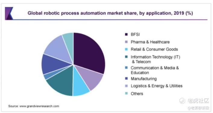 Grand View Research一份市场研究报告显示了2019年按应用分列的全球机器人过程自动化市场份额: