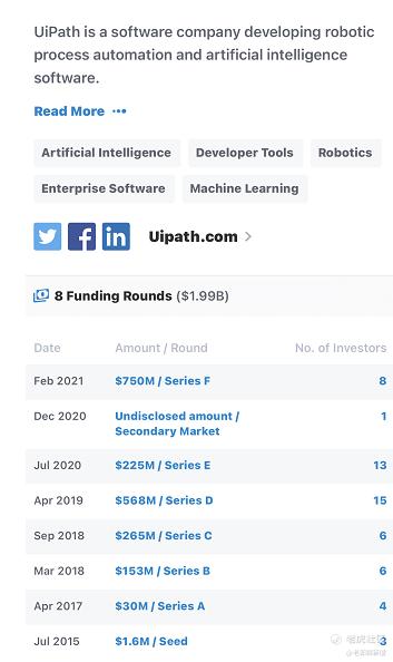 目前UiPath已经从包括Accel Partners,Earlybird和CapitalG在内的投资方获得了至少12亿美元的资金,该公司的历史募集资金如下: