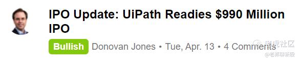 UiPath(PATH)计划于4月21日上市,该公司在美国IPO中筹集9.9亿美元。
