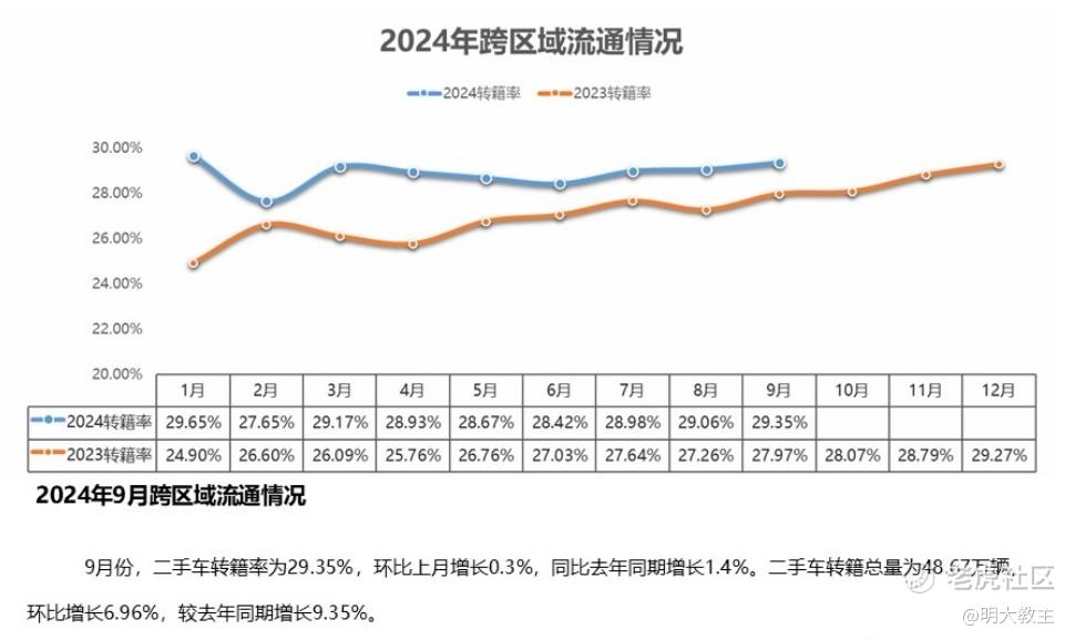 在“以旧换新”等政策刺激下,2024年二手车转籍率较去年同期均提升1-3个百分点。