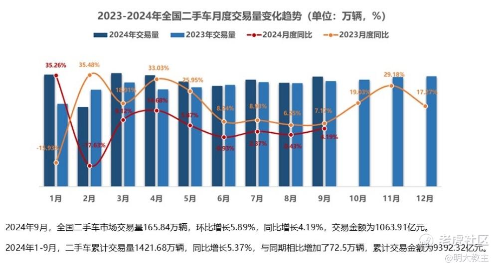今年1-9月,全国二手车累计交易量1421.68万辆,同比增长5.37%,累计交易金额突破9300亿。