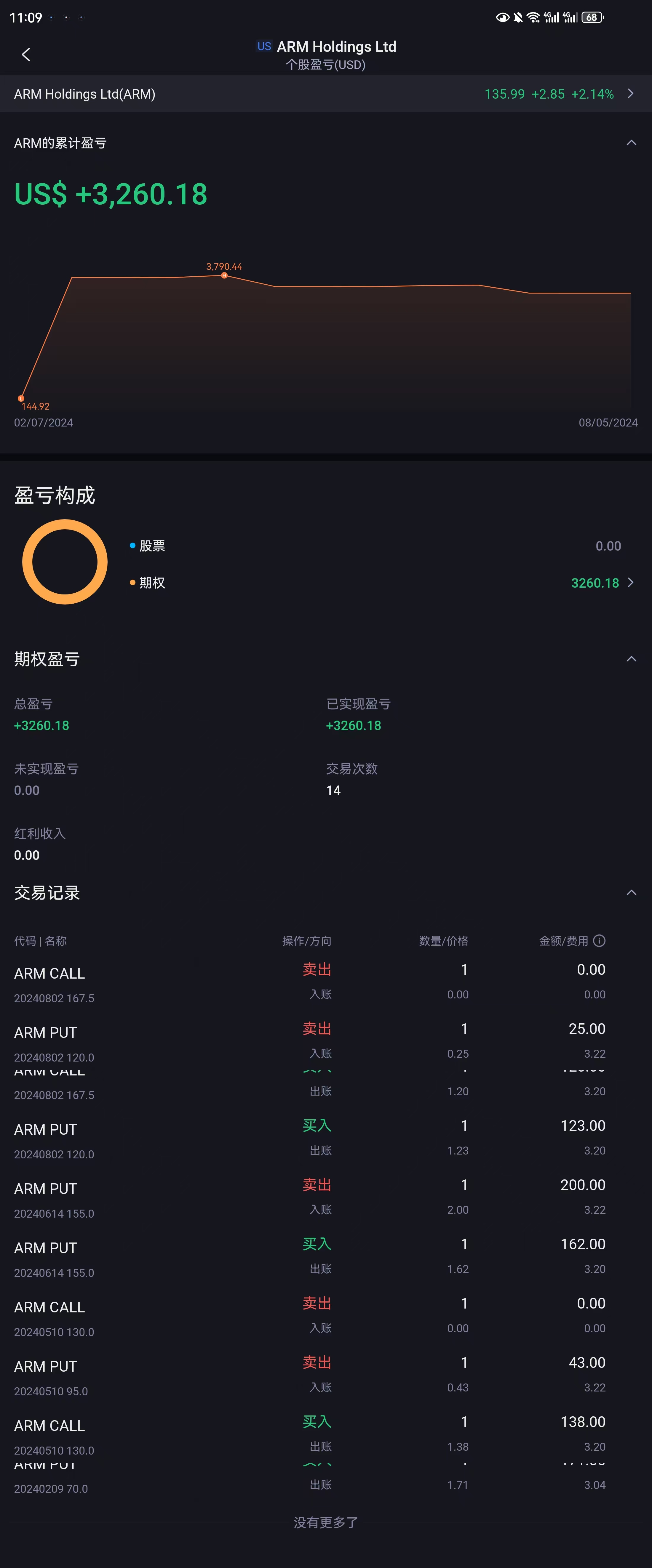 操作案例:单笔最收益来自于ARM的2024Q3的财报。