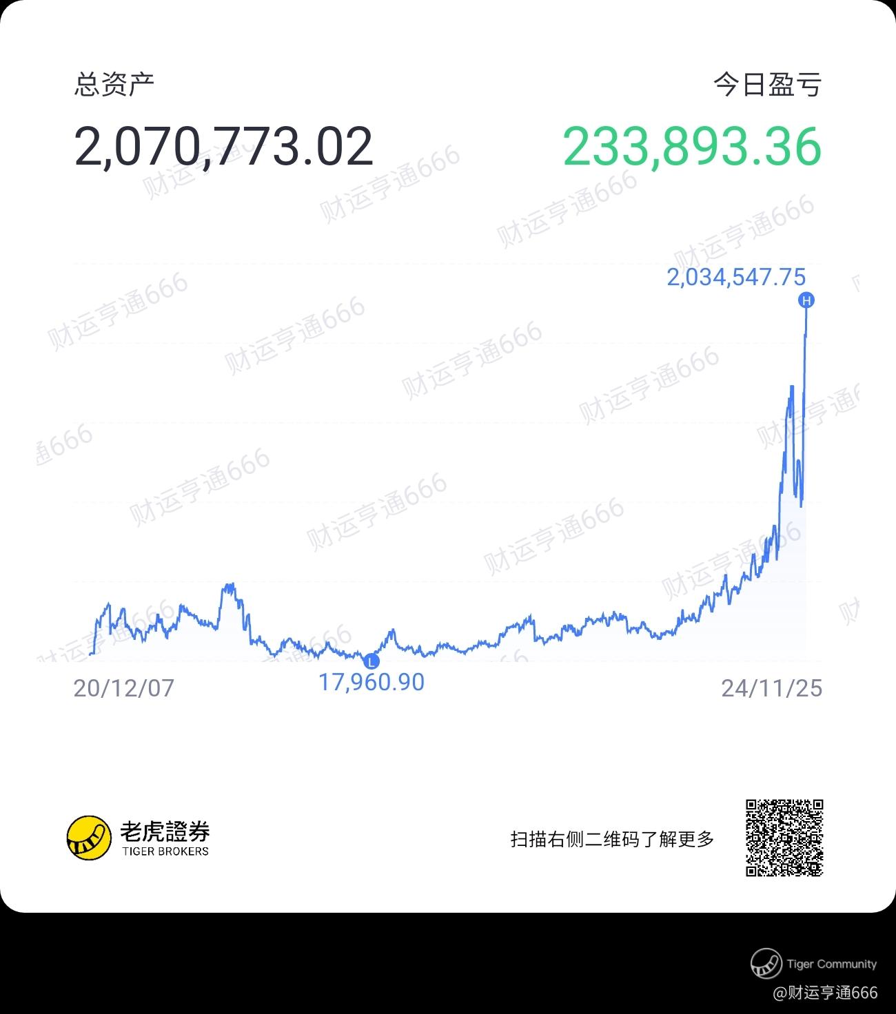 $三倍做多富时中国ETF-Direxion(YINN)$ $三倍做多半导体ETF-Direxion Daily(SOXL)$ $超微电脑(SMCI)$ $特斯拉(TSLA)$ 纪念一下,账户超过 200w rmb了。十月初的,才刚刚到100w rmb。没想到从1 到2,这么快。希望从2到3也能这么快。 到1基本靠yinn和soxl。这次到2,基本靠Tsla和 smci。感谢~