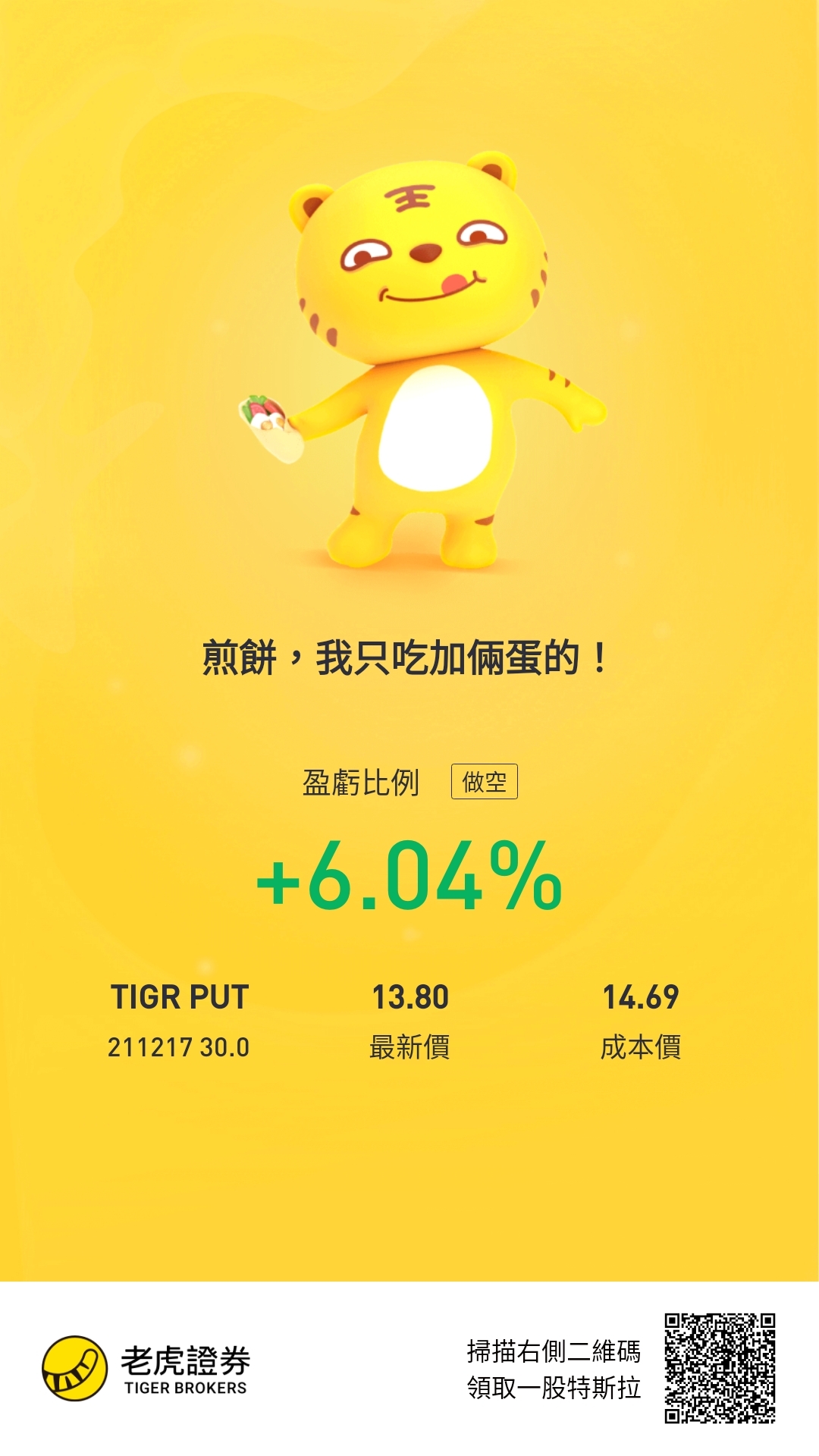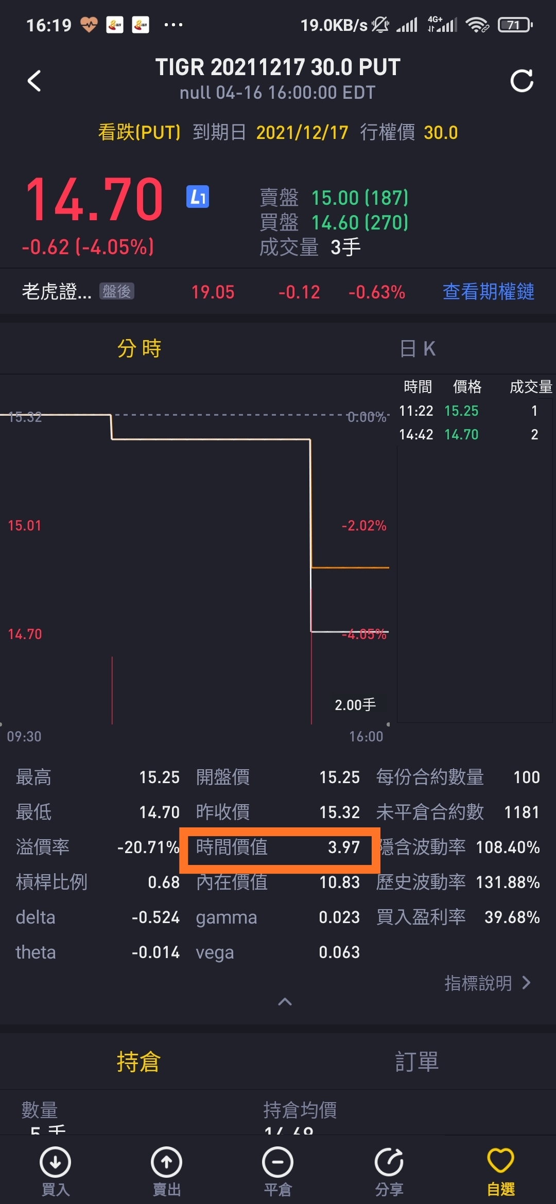 而持倉也只有一支,那就是賣了$老虎證券(TIGR)$的put