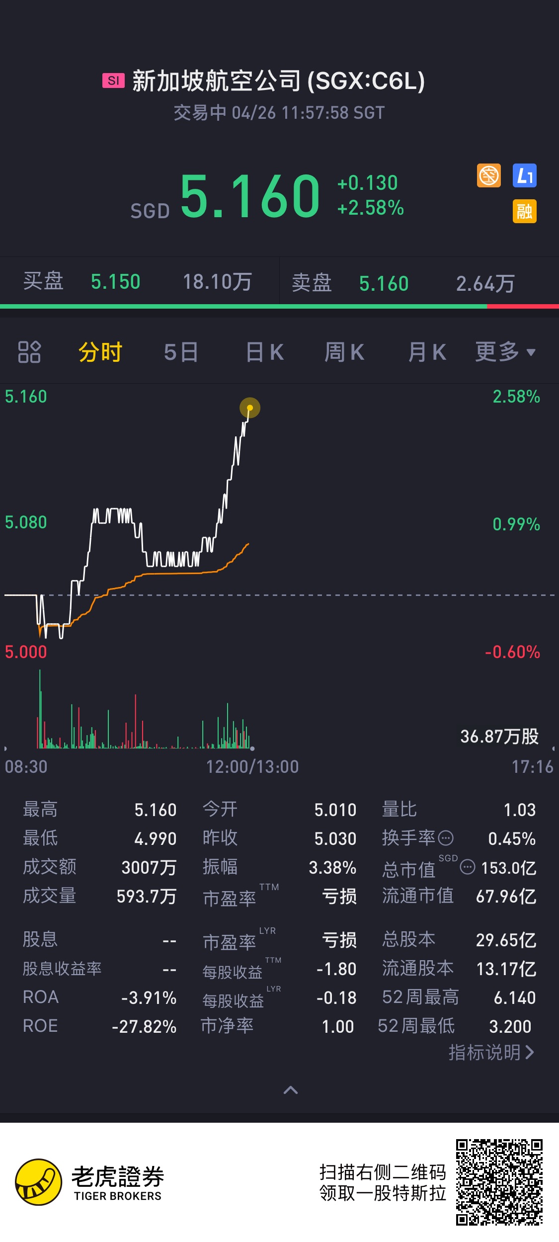 $新加坡航空公司(C6L.SI)$
