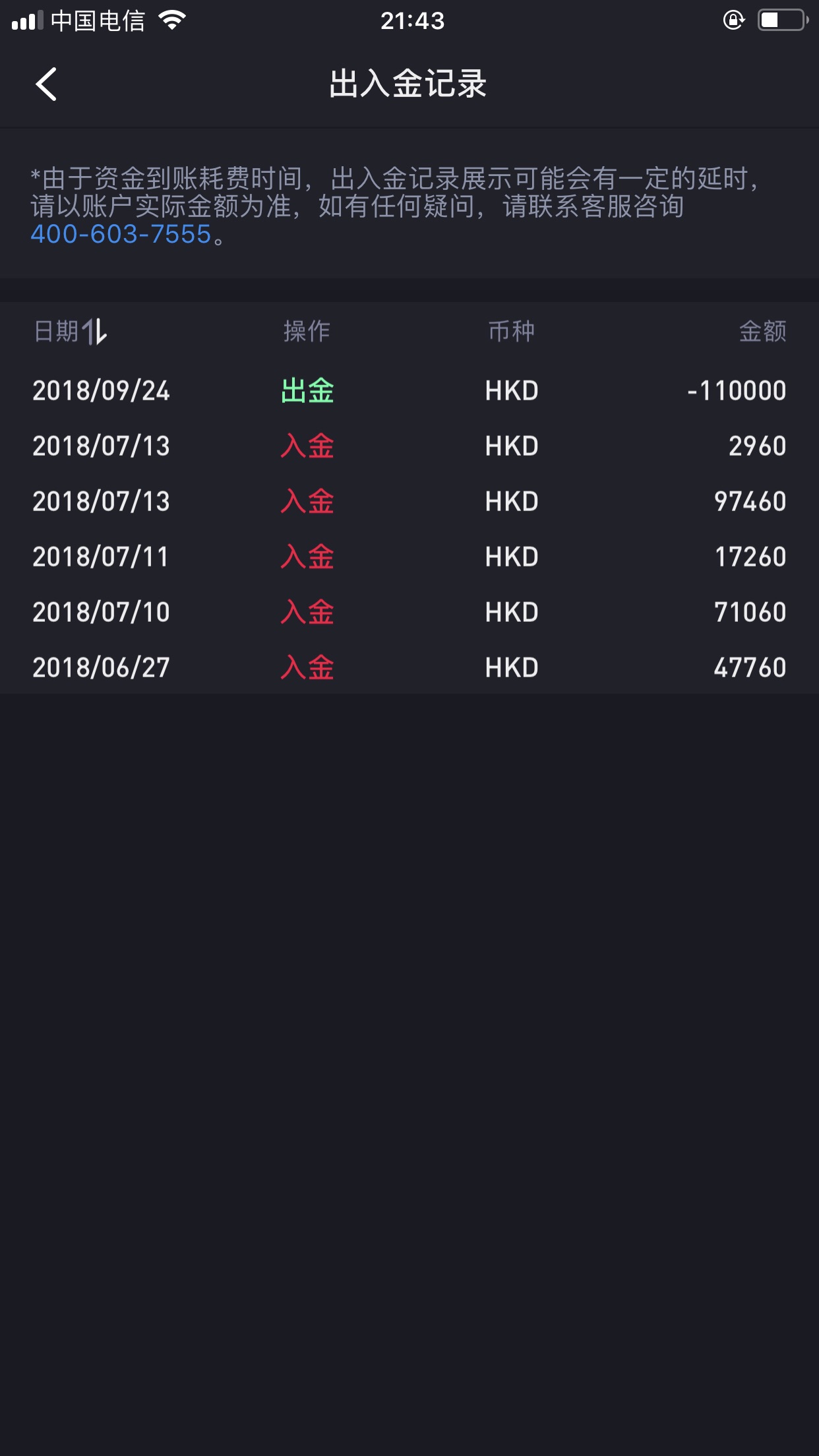 出金一次 110000HKD=96800CNY