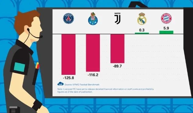 无独有偶,整个 19-20 赛季,欧洲豪门仅有皇马和拜仁实现百万级别的盈利,巴黎圣日耳曼、波尔图等球队全赛季亏损 1 亿欧元,而皇马的盈利是依靠出售核心球员才勉强维持,这对皇马的俱乐部成绩造成了很大影响(皇马 18-19 赛季净流入接近 4000 万欧元)。