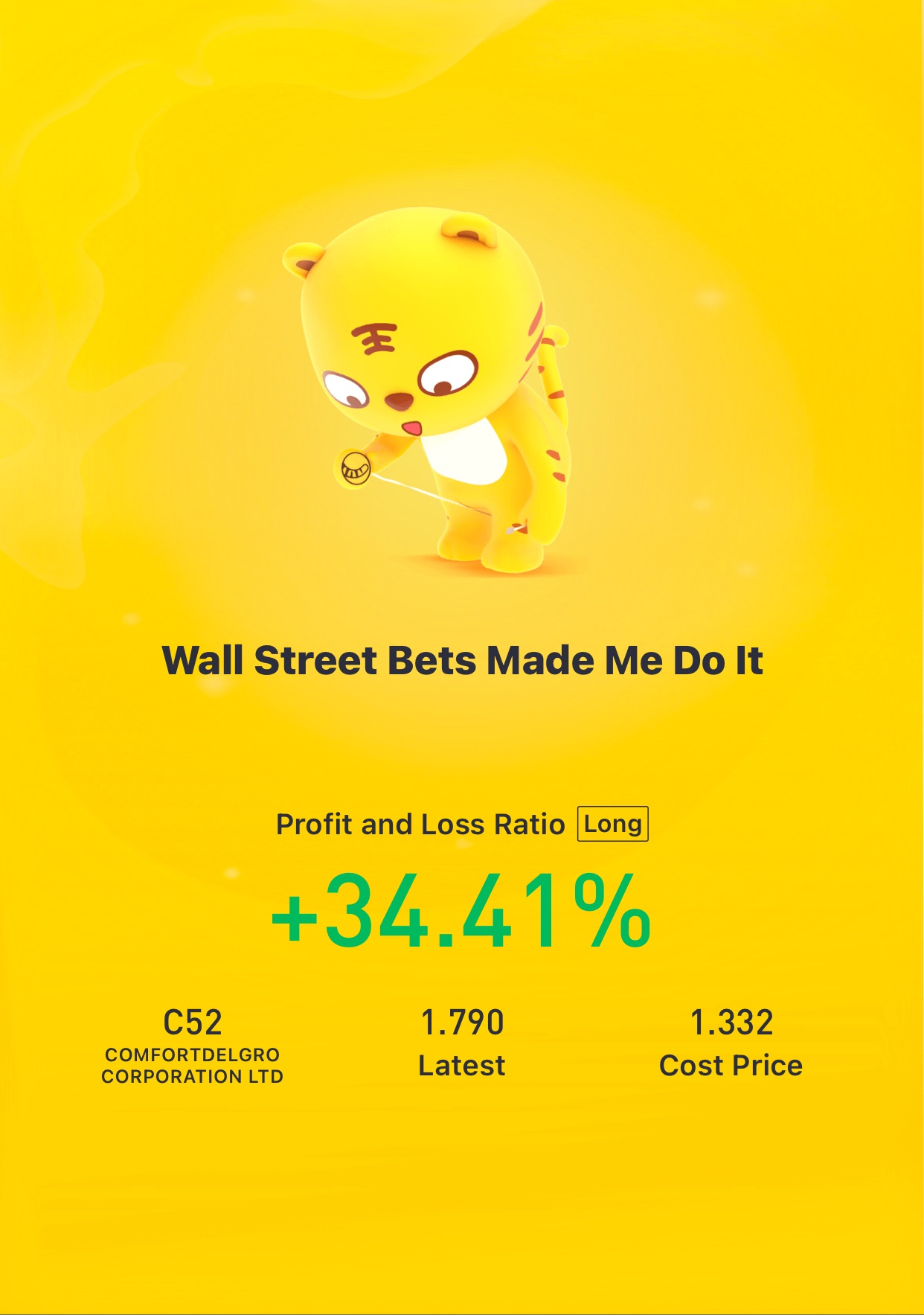 {"i18n":{"language":"zh_CN"},"detailType":1,"isChannel":false,"data":{"magic":2,"id":376200118,"tweetId":"376200118","gmtCreate":1619126639734,"gmtModify":1631886364293,"author":{"id":3555905325072862,"idStr":"3555905325072862","authorId":3555905325072862,"authorIdStr":"3555905325072862","name":"SeeKayGo","avatar":"https://static.tigerbbs.com/7ecf89697ddfb328031a8eb9c4385cda","vip":1,"userType":1,"introduction":"","boolIsFan":false,"boolIsHead":false,"crmLevel":12,"crmLevelSwitch":0,"individualDisplayBadges":[],"fanSize":29,"starInvestorFlag":false},"themes":[{"themeId":"5bfad02ab61749c8bfe6573ac7bbe8a3","categoryId":"b76d3c59fc044df59779c041b25852a6","name":"晒晒更赚钱","type":0,"rnLink":"https://laohu8.com/RN?name=RNTheme&page=/theme/detail&rndata={\"themeId\":5bfad02ab61749c8bfe6573ac7bbe8a3}&rnconfig={\"headerBarHidden\": true}","description":"晒晒你的盈亏单,秀秀虎友们的实力!","image":"https://static.tigerbbs.com/347184265ee0be8c363259951f8033cb"}],"images":[{"img":"https://static.tigerbbs.com/76f6af92817745f4e6980456e54f8f9c","width":"1242","height":"1767"}],"coverImages":[{"img":"https://static.tigerbbs.com/76f6af92817745f4e6980456e54f8f9c","width":"1242","height":"1767"}],"extraTitle":"","html":"<html><head></head><body><p><a href=\"https://laohu8.com/S/C52.SI\">$COMFORTDELGRO CORPORATION LTD(C52.SI)$</a>Oh yeah!</p><img src=\"https://static.tigerbbs.com/76f6af92817745f4e6980456e54f8f9c\" tg-width=\"1242\" tg-height=\"1767\"></body></html>","htmlText":"<html><head></head><body><p><a href=\"https://laohu8.com/S/C52.SI\">$COMFORTDELGRO CORPORATION LTD(C52.SI)$</a>Oh yeah!</p><img src=\"https://static.tigerbbs.com/76f6af92817745f4e6980456e54f8f9c\" tg-width=\"1242\" tg-height=\"1767\"></body></html>","text":"$COMFORTDELGRO CORPORATION LTD(C52.SI)$Oh yeah!","highlighted":1,"essential":1,"paper":1,"likeSize":3,"commentSize":1,"repostSize":1,"favoriteSize":0,"link":"https://laohu8.com/post/376200118","repostId":0,"isVote":1,"tweetType":1,"viewCount":1004,"commentLimit":10,"likeStatus":false,"favoriteStatus":false,"reportStatus":false,"symbols":["C52.SI"],"verified":2,"subType":0,"readableState":1,"langContent":"EN","currentLanguage":"EN","warmUpFlag":false,"orderFlag":false,"shareable":true,"causeOfNotShareable":"","featuresForAnalytics":[],"commentAndTweetFlag":false,"andRepostAutoSelectedFlag":false,"upFlag":false,"length":44,"xxTargetLangEnum":"ORIG"},"commentList":[],"isCommentEnd":true,"isTiger":false,"isWeiXinMini":false,"url":"/m/post/376200118"}