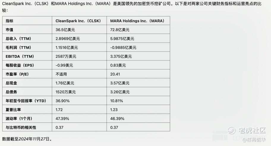 两家公司在加密货币挖矿行业中扮演着重要角色,具有不同的财务状况和运营策略。投资者应结合市场状况和个人投资目标,综合考虑这些因素。$CleanSpark, Inc.(CLSK)$ $MARA Holdings(MARA)$
