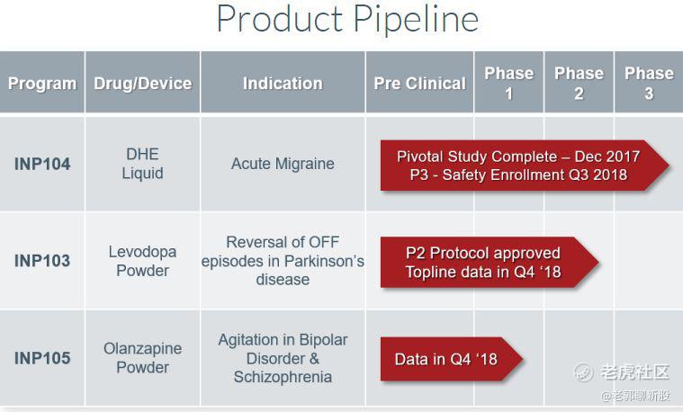 成立于华盛顿州西雅图的Impel的成立是为了开发针对急性头痛、自闭症、帕金森综合症的药物,三款产品。下图是产品线: