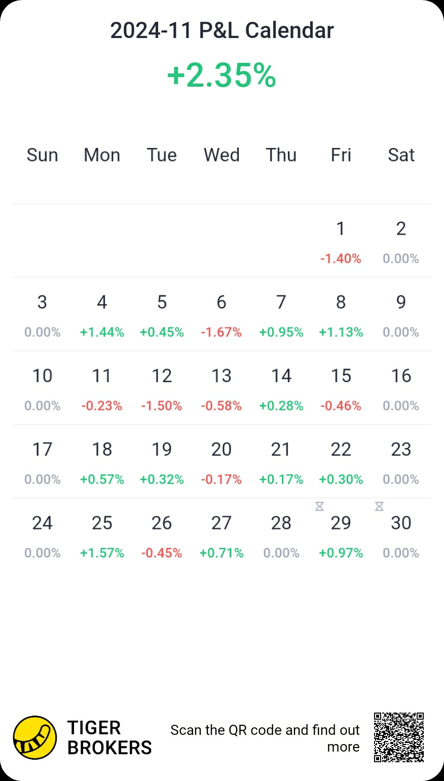 In November, my portfolio saw a positive return of 2.35%, marking another step forward in achieving my investment goals. My current holdings include a mix of assets: Occidental (OXY), Ready Capital Corp (RC), TLH and TLT. This combination of equities and bond ETFs reflects a balanced strategy in a way that keeps me optimistic about the months ahead. November's performance was a win and I am excited to keep building on this momentum as I refine and optimise my strategy for the future! [Cool]