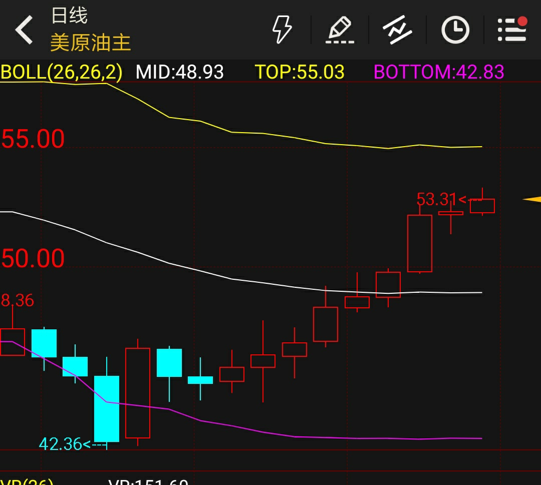 $三倍做多原油ETN(UWT)$希望这波可以到布林上轨