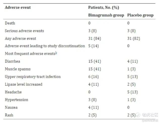 尽管拥有强大的减重和增肌效果,Bima并非没有缺点,这也给后来者指引出更多优化或迭代的机会。诺华2021年在JAMA发表的Bima临床数据显示:其核心不良事件是轻度腹泻(41% vs 11%)和肌肉痉挛(41% vs 3%),尤其是首次给药后腹泻频率最高,后逐渐减少;另外,上述提到的2型糖尿病合并肥胖患者的二期临床试验中有5名患者因为不良反应事件导致研究中止,这也为后续Bima大样本临床增加了更多的不确定性。