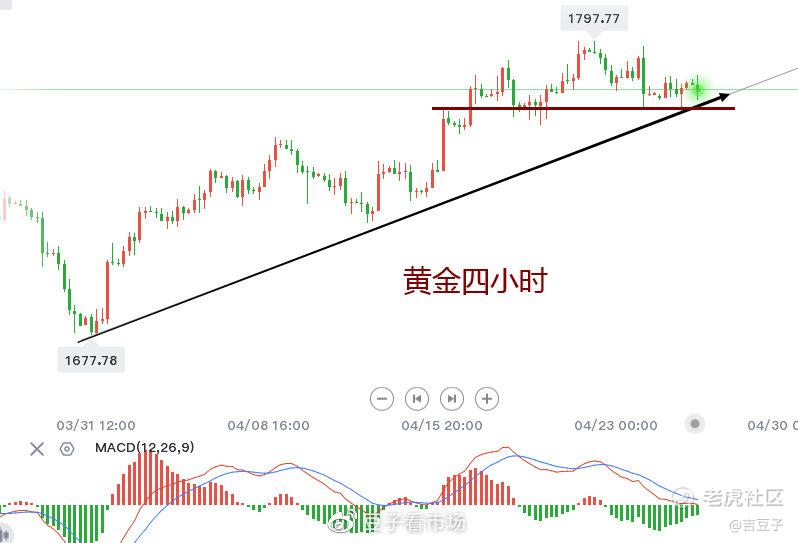 图为黄金四小时级别,从底部反弹后整体的上行结构不算非常完美,但的确没有破坏,横线为1769,一周前就在这个位置进行了下探,但是没有成功,频繁拉出下影线但下破都失败了,之后便有了新高1797,不过这个位置比我的预期要低,那时候是想着能1800的。但也说明的确涨势在变弱,macd的空头动能占据主力却一直没跌下去。日内我是不指望能来什么高点,最好在低点继续盘,或者是再下破个70后再反弹,因此还是不建议做多,高空为主,和昨天思路差不多,今天收线在75附近即可,日线平台搭建完成,4小时的空头也多消耗一下, 明天开始新的上涨。