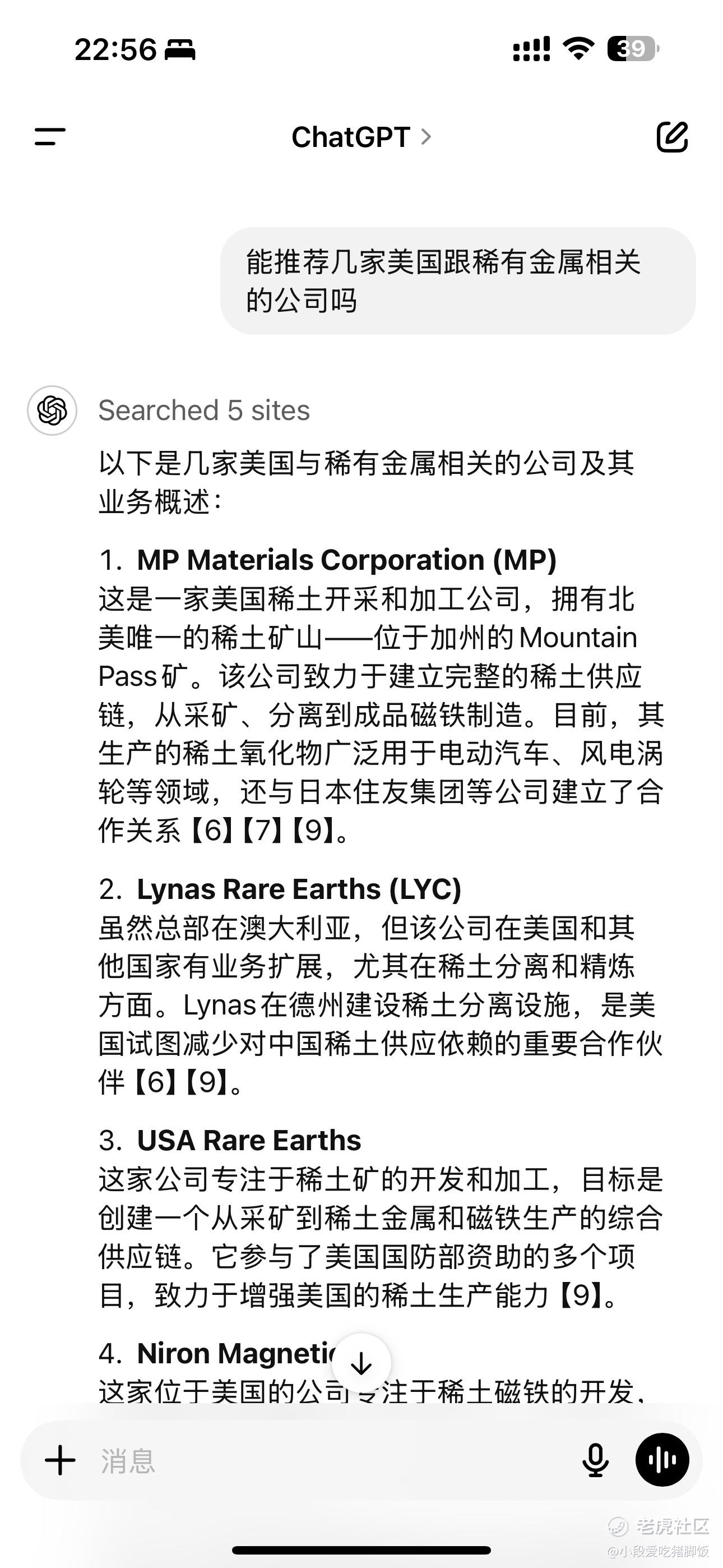 二、确定思路以后,下一步就是确定标的,这点GPT帮了大忙,使我了解到MP拥有最大矿山并且是加州唯一一家稀土公司,我想美国人还没有起床,决定抢跑。