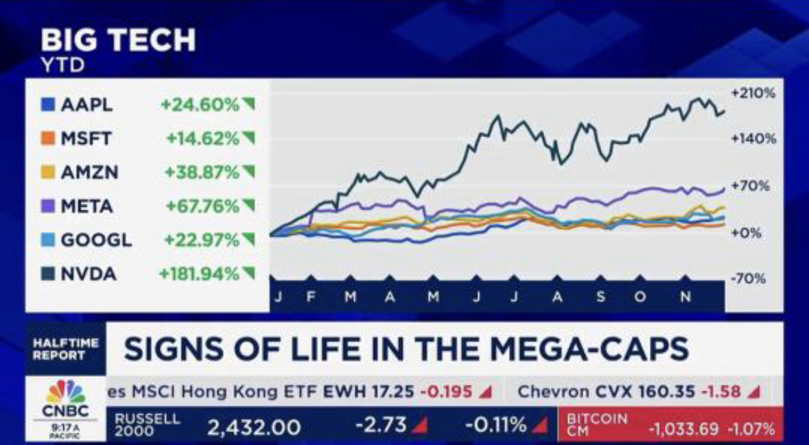 M7今年的表现,回头看都是低点呀,除了特斯拉,微软、谷歌回报较低,跑输大盘,大盘都涨了28%,应该要轮到微软涨了吧