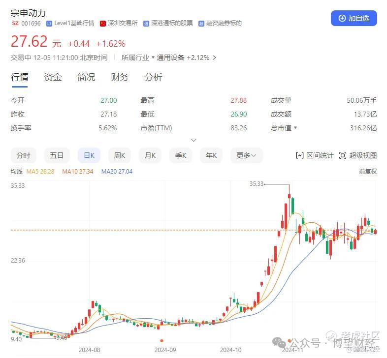 反映在二级市场上,宗申动力股价飙升,自2月6日最低点至10月31日最高价涨幅超过7倍,目前市值约316.26亿元,虽有回落,但仍涨势强劲。