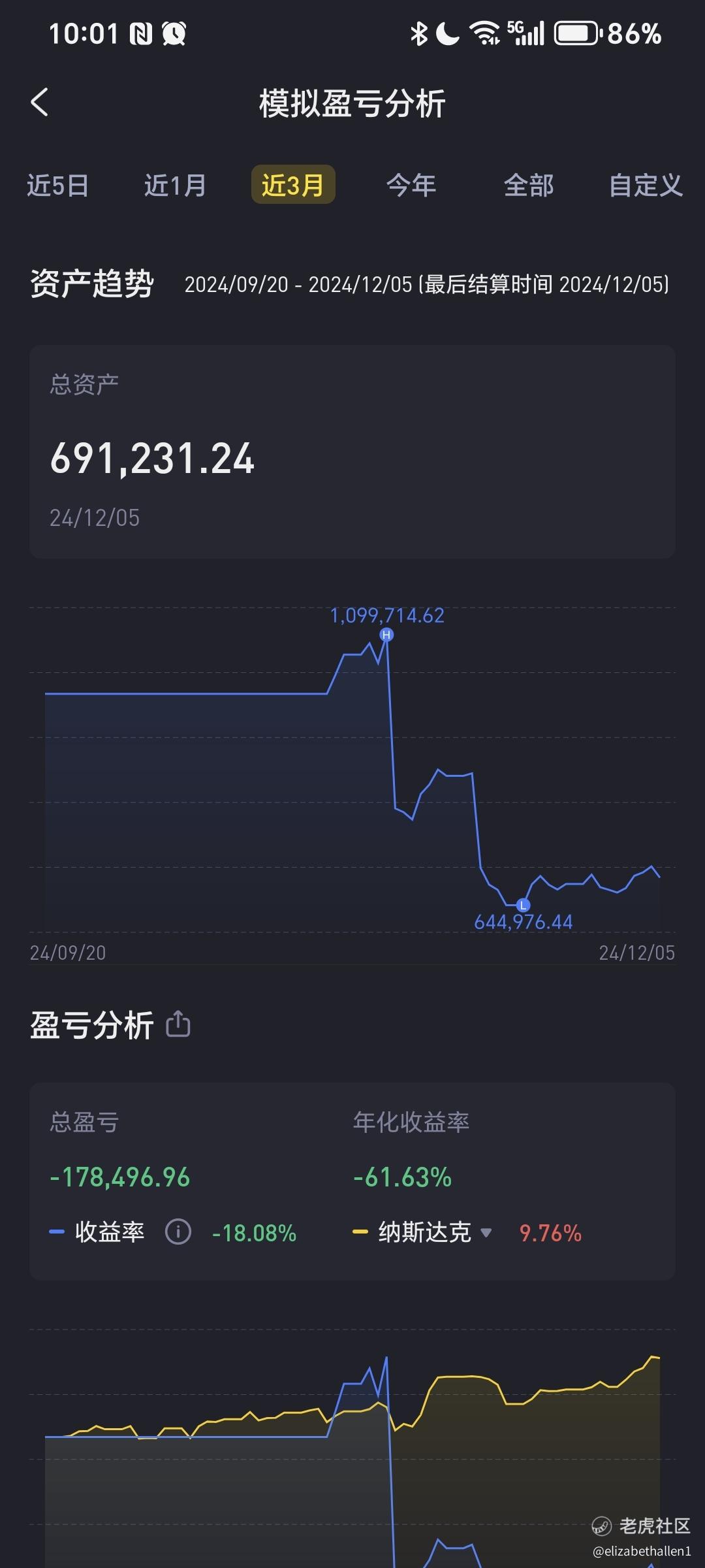 实盘 亏损80%,如果蔚来明年 1月下旬有很大改善还可以回本盈利,模拟盘亏损50%,说明投资管理能力不行出现了严重的问题。