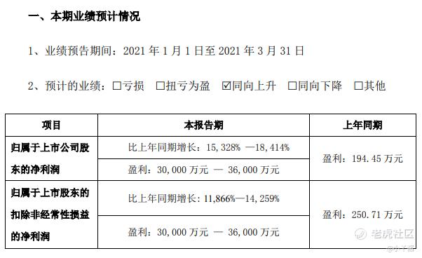 同时,该公司还发布2020年业绩快报,其全年全年净利润为4.64亿元,这意味着今年第一季度取得的净利润,相当于去年全年净利润的64.7%至77.7%。
