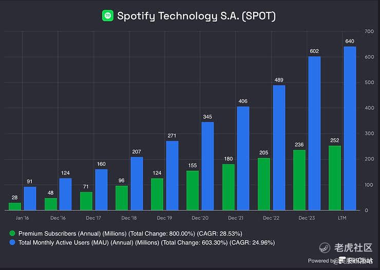 Spotify 的成长故事,是耐心、洞察和灵活管理的典范。从曾经的高增长但低盈利公司,到如今盈利能力显著提升的音频平台,Spotify 的转型历程为投资者提供了宝贵的学习机会。无论是从财务表现还是投资策略的角度看,Spotify 都证明了优质企业在克服行业挑战后可以实现的长期价值。