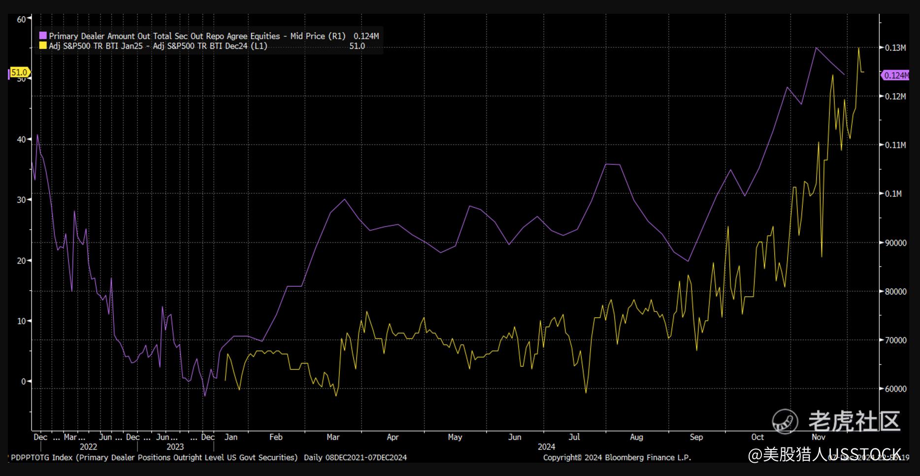 此外,一级交易商回购活动最近激增,表明股票支持回购协议有所增加,其中股票被用作抵押品来筹集现金。这可能是流动性紧张加剧的迹象。