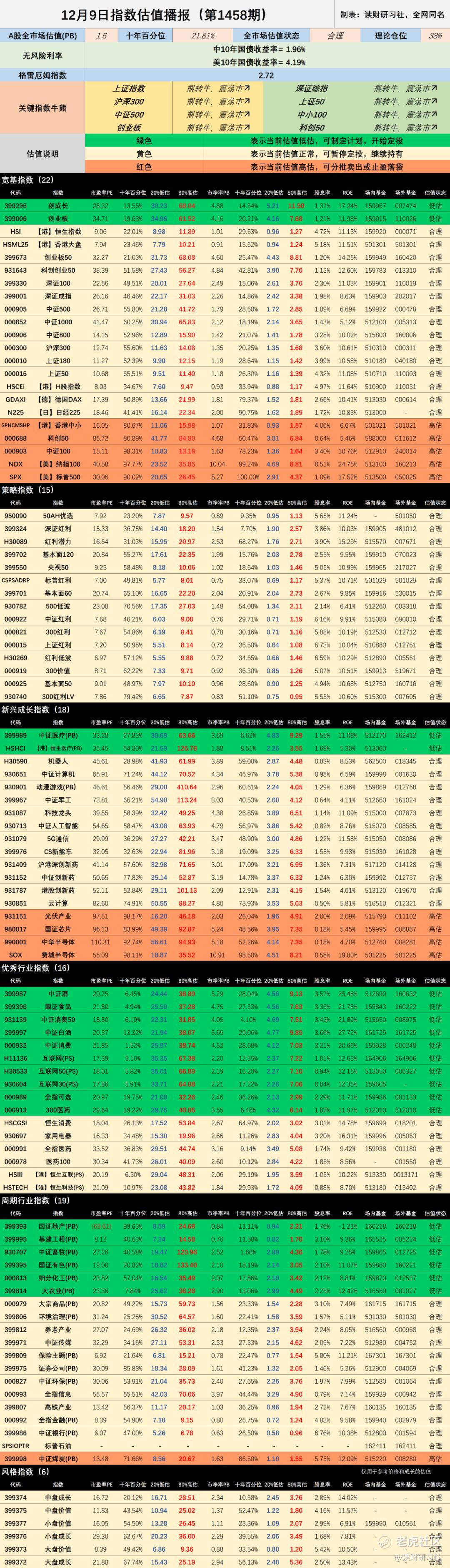 1. 绿色代表低估,黄色代表合理,红色代表高估;