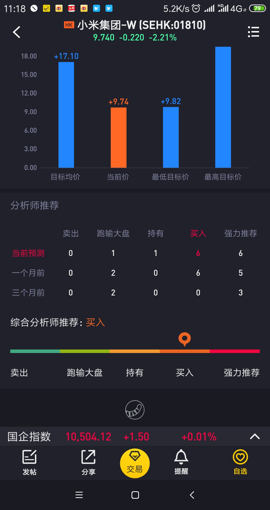 $小米集团-W(01810)$分析师综合评价为买入,但大部分贴子都分析还要跌,这2种分析到底有没有矛盾?