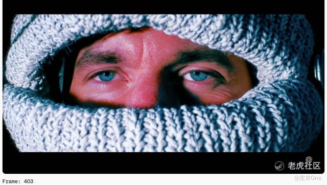 最后在324-440帧,将画面聚焦到宇航员眼睛的特写镜头,他的眼睛被针织面料制成的面罩包裹住。
