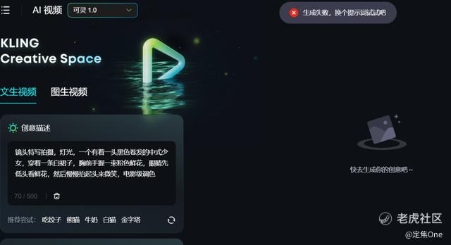 从生成效果来看,几家都理解了特写拍摄、少女、裙子、粉色鲜花、低头看花、微笑等人、物和动作,但问题出在指令解读上,比如可灵没有读懂“一个有着一头黑色卷发的中式少女”,随后我们换成“一个中式少女、黑色长卷发”才成功生成。