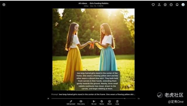 「定焦One」注意到,与上一个版本相比,此次的Sora Turbo支持生成1080p分辨率、最长20秒的视频,在时长上有明显突破。更大的亮点在于它提供“编辑”服务,除了单纯的文生视频、图生视频、视频生视频,用户还可以通过指令实现视频重混、重新剪辑、循环、混合等功能,更像是一个加强版的视频编辑器。