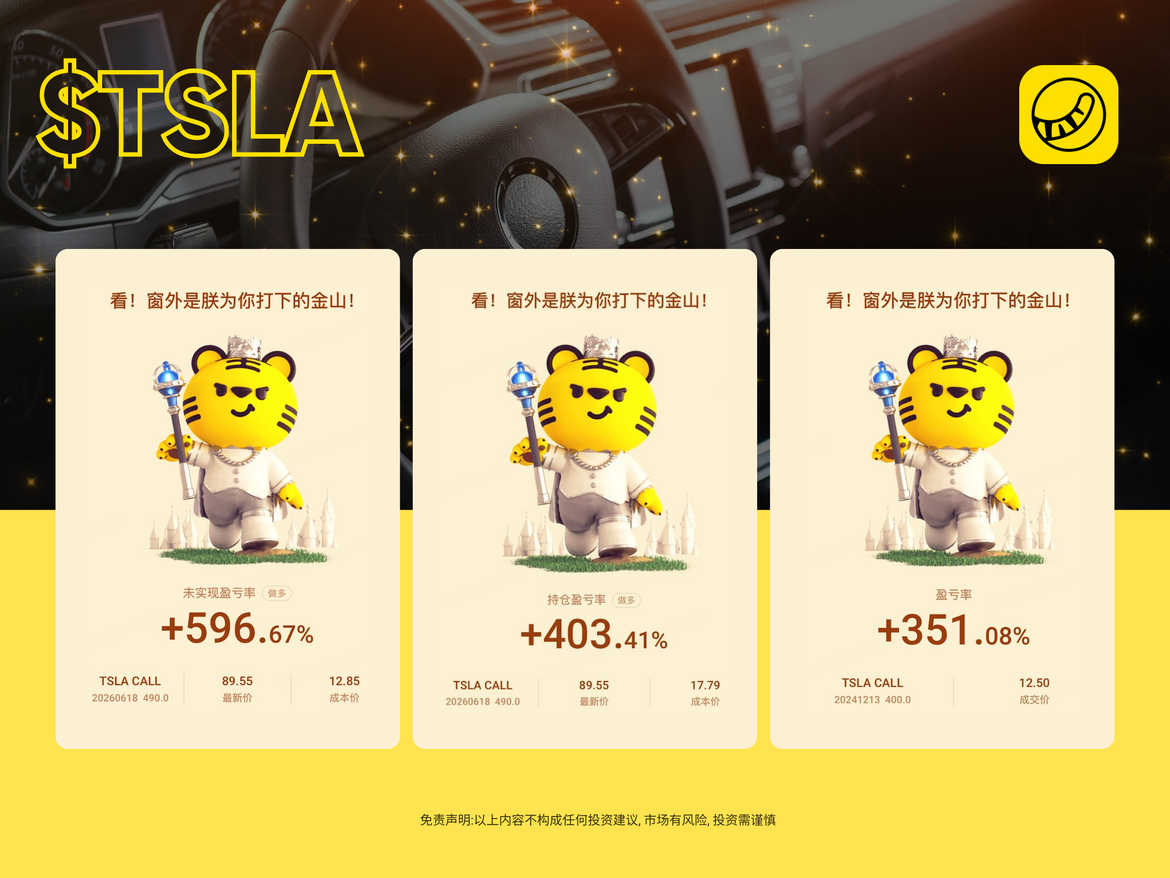 恭喜虎友 @特斯拉多头和PLTR多头 @Robert.W 分别大赚596% 、403%、351%