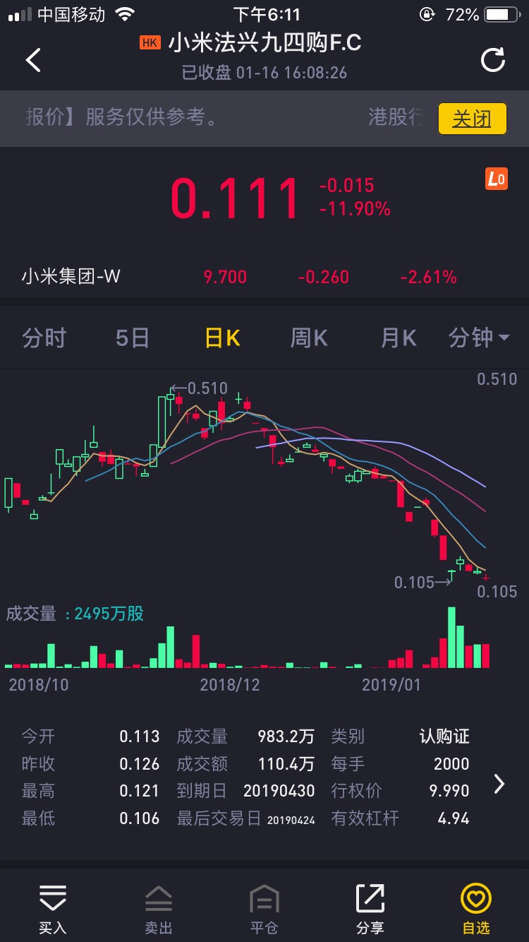$小米集团-W(01810)$ 涡轮新手,哪位大神帮忙解惑一下:11月21日小米股价15.16,而该涡轮的打和价是11.11,为何它的价格那时只有0.5几?