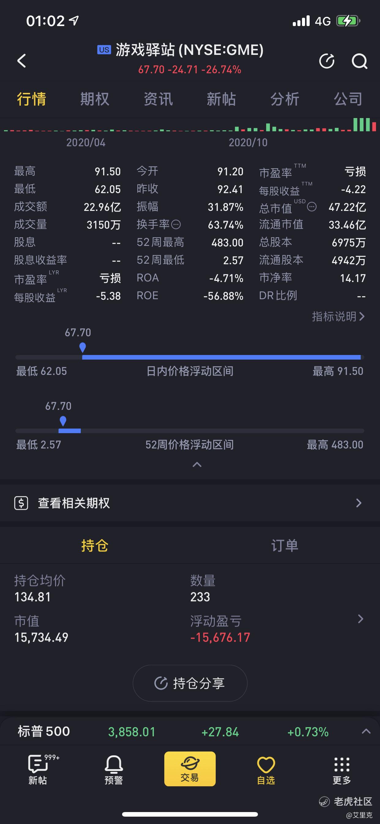 $游戏驿站(GME)$ 人都会为自己的认知能力买单,上周爆涨周五收盘在328时,各大社区都high翻天了,讨论的都是最低挂3000,5000,10000美金一股,甚至还有喊到6W美金一股的,仿佛这周只要持有这个票就立刻暴富财务自由了,这段期间我非常不看好也完全不参与,但一直从各个地方浏览查询相关信息关注盘面走势变化。从前天开始股价一路下杀到1字头开始所有人开始叫苦连天,不少人开始咒骂这是个骗局很多人割肉走人并四处奔走相劝早点割再晚走渣都不剩了,媒体上也到处流传着空票早已平仓,此票早已gameover。