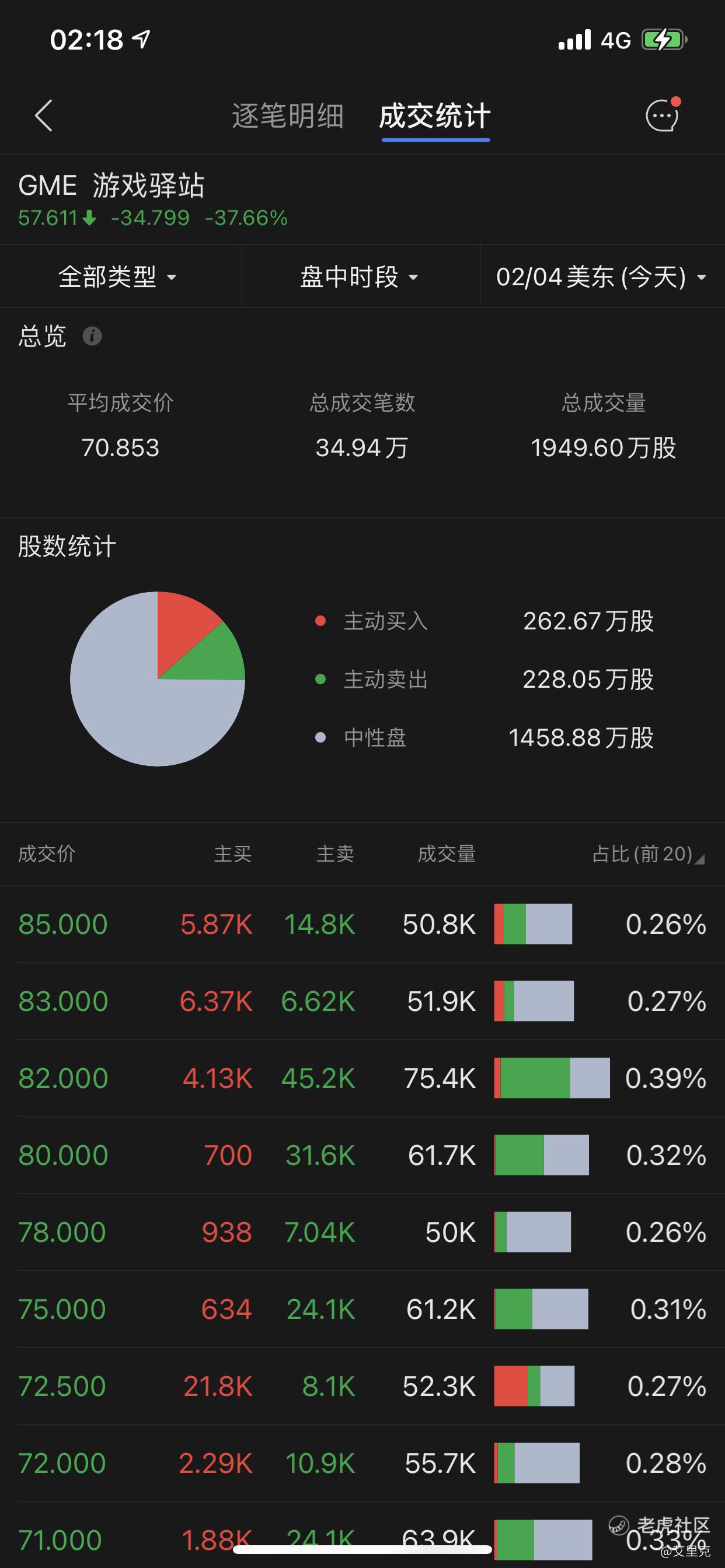 但我观察每天交易走势,如果老虎和FT的数据不是造假的前提下,每天的买单都比卖单多,而且每天80%以上的交易都是中性盘,在这种情况下股价能从380一路杀到48,我反而现在开始看好SS的机会。 前天188开始建仓,68补完最后一手,交易前订下最多拿三万美金参与,如果输了就当是在vegas玩了一圈,也是为自己认知能力的缺陷买单,只能说自己能力还不够强要好好努力提升自己 。