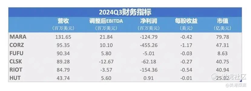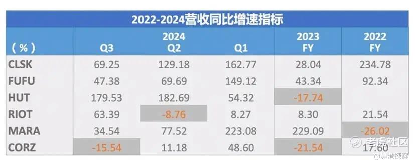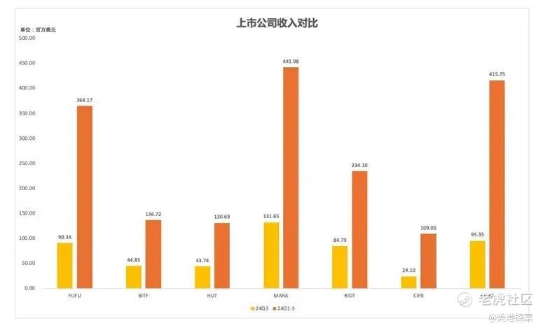 挖矿上市公司Q3财报收入对比和2024年Q1-Q3累计收入对比