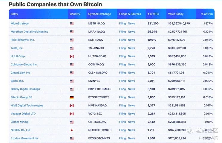 拥有比特币的上市公司排行,来源:https://treasuries.bitbo.io/#public