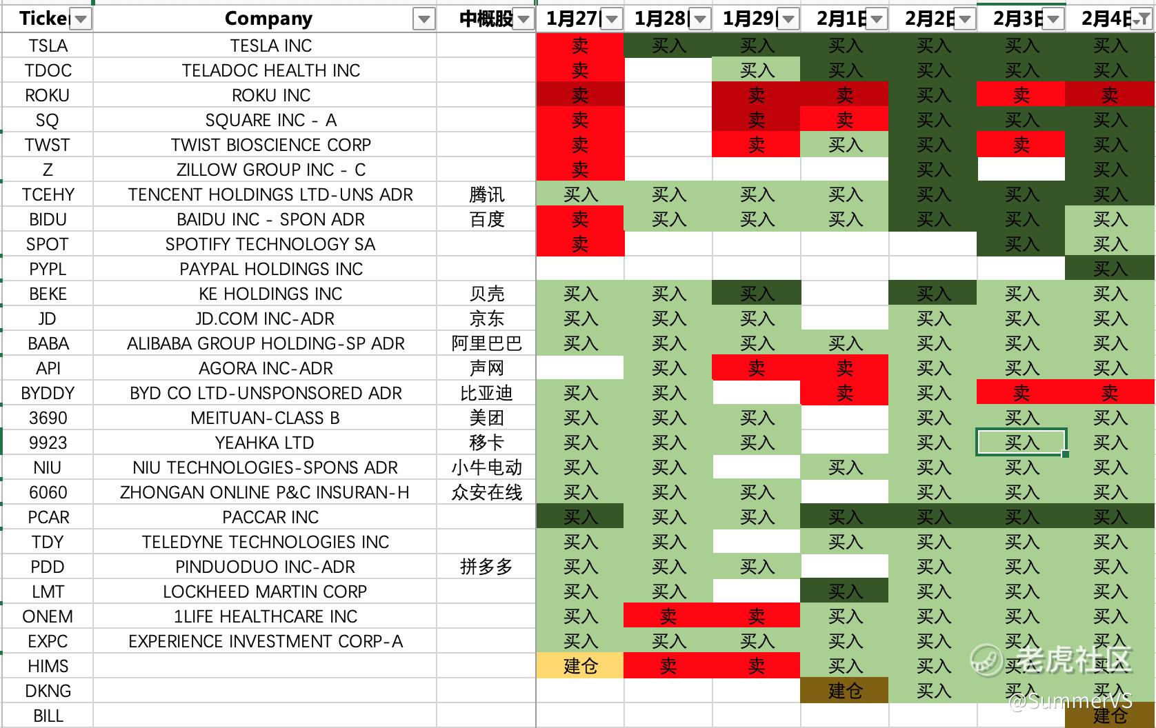 「ARK基金七日跟踪2月4日, Catherine wood木头姐持仓」颜色深的代表增减超过1000w美金,每天筛选发前一天有操作的股票,感谢@ARK实盘跟踪 的每日发帖,实仓跟踪。$特斯拉(TSLA)$$Teladoc Health Inc.(TDOC)$$腾讯控股(00700)$