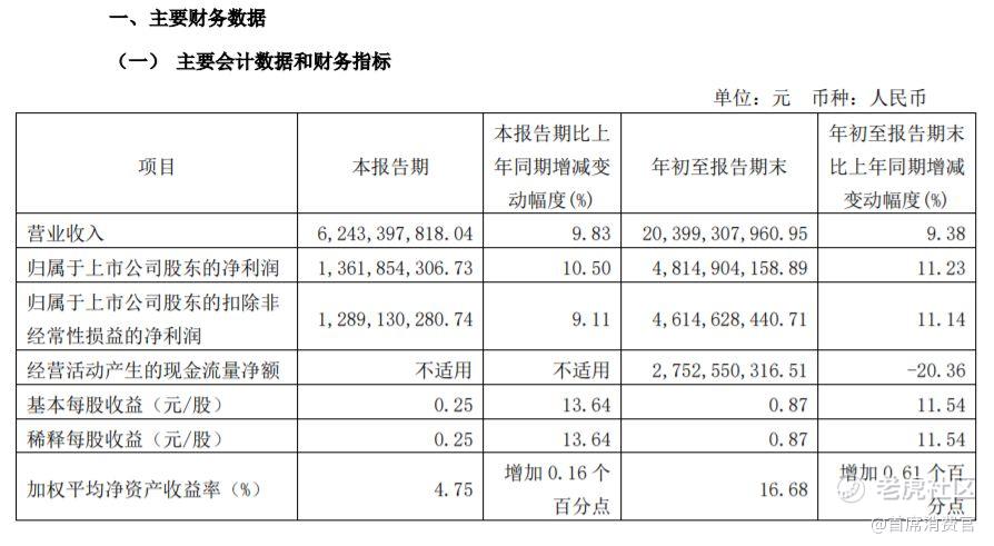 根据财报,2024年前三季度,海天味业实现营业收入约203.99亿元,实现归母净利润48.15亿元,同比分别增长9.38%、11.23%。