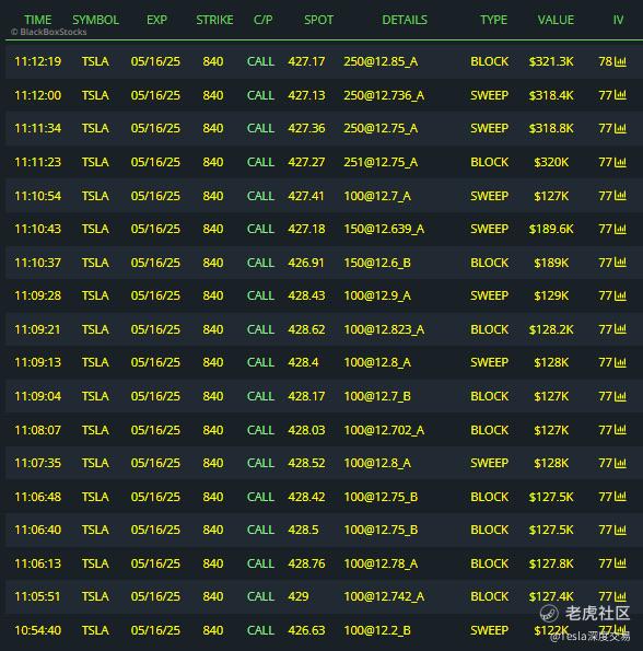 突发:有资本大佬重金购买了2025年5月到期的特斯拉840美元看涨期权,价值近400万美元......。特斯拉还能涨一倍?